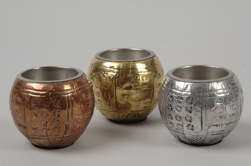 Photophore en BOIS recouvert d'un revêtement métal garni d'une bougie chauffe- plat.