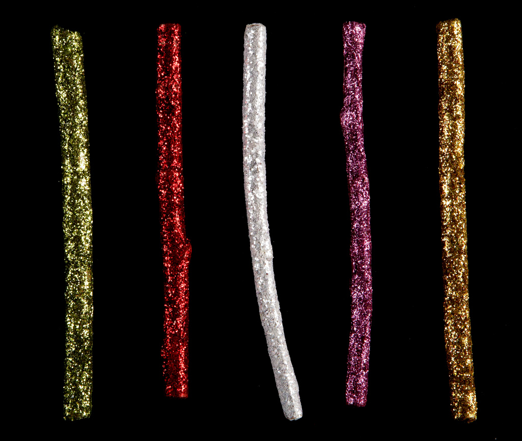 Set de 10 bois pailletés, à poser comme marque-place ou porte-couteau.