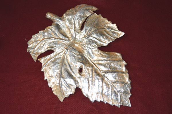 Feuille de vigne argent vieilli, grand modèle, à suspendre ou à poser.