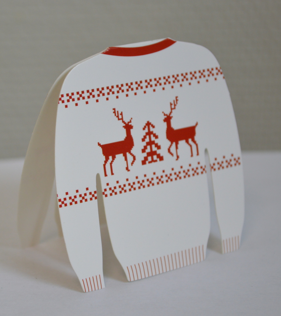 Marque-place autoportant en forme de Pull de montagne Jacquard, en papier cartonné avec impression sur les 2 faces.