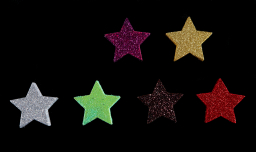 3 Etoiles Pailletées munies d'une fente pour insérer un nom, une étiquette de prix, un menu....