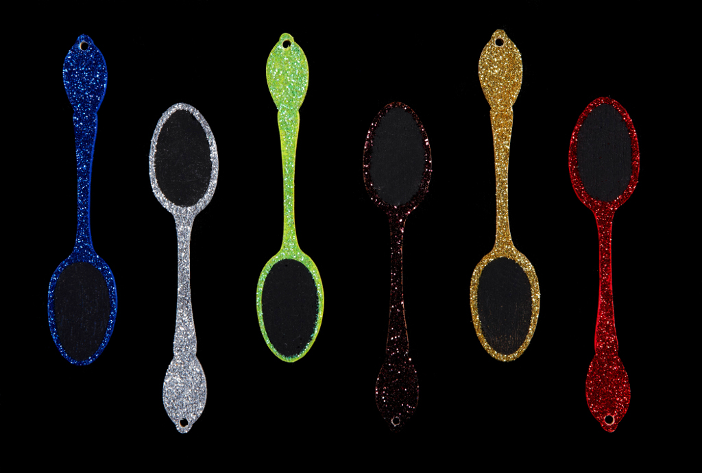 6 Cuillères Pailletées avec ardoises pour écrire à la craie ou coller un nom, une étiquette de prix....