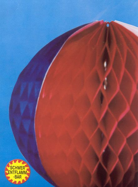 Boule nid d'abeille en papier tricolore, avec cordelette de suspension, pour créez votre décor en associant différentes matières, formes, tailles et couleurs.- Diamètre : 32 cm