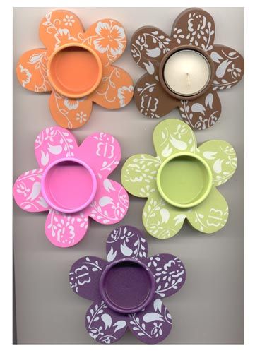 Bougeoir en forme de marguerite, en bois peint.