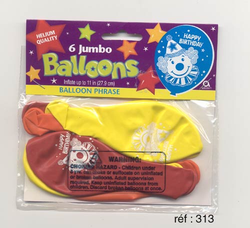 Ces ballons sont assortis à tous les produits d'anniversaire avec un décor de têtes de clowns réf.229, réf.312, réf.318, réf.323, réf.324, pour un décor de goûter d'enfants complet et réussi