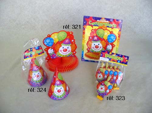 Ces sifflets sont assortis à tous les produits d'anniversaire avec un décor de têtes de clowns réf.229, réf.312, réf.313, réf.324, réf.318, pour un décor de goûter d'enfants complet et réussi.