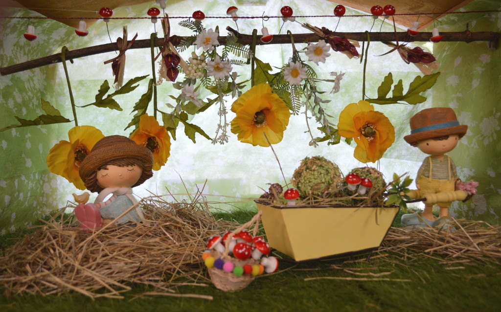 Décoration de vitrine d'automne : La fin des moissons - 100 x 80 cm