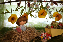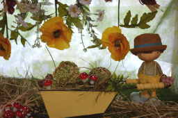 - Un garçon, en position debout, avec chapeau et panier de fleurs - 18 x 10 cm réf.633
