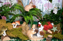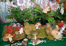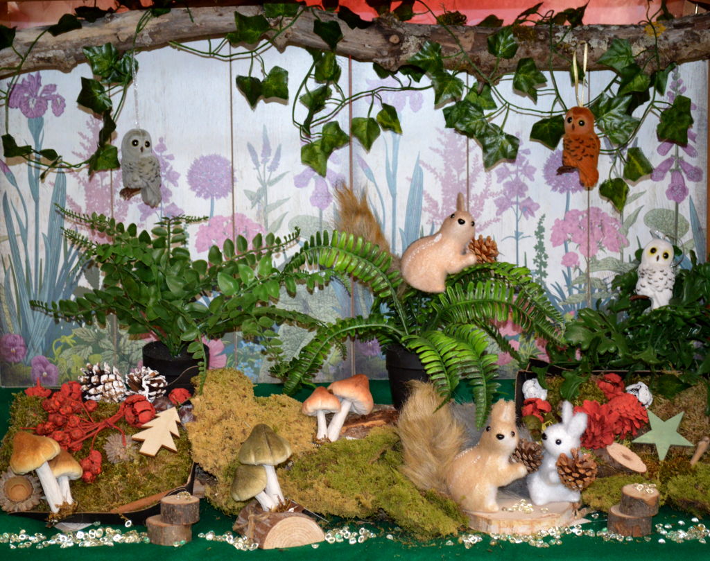 Décoration de vitrine d'automne : Un super coin à champignons - 120 x 100 cm